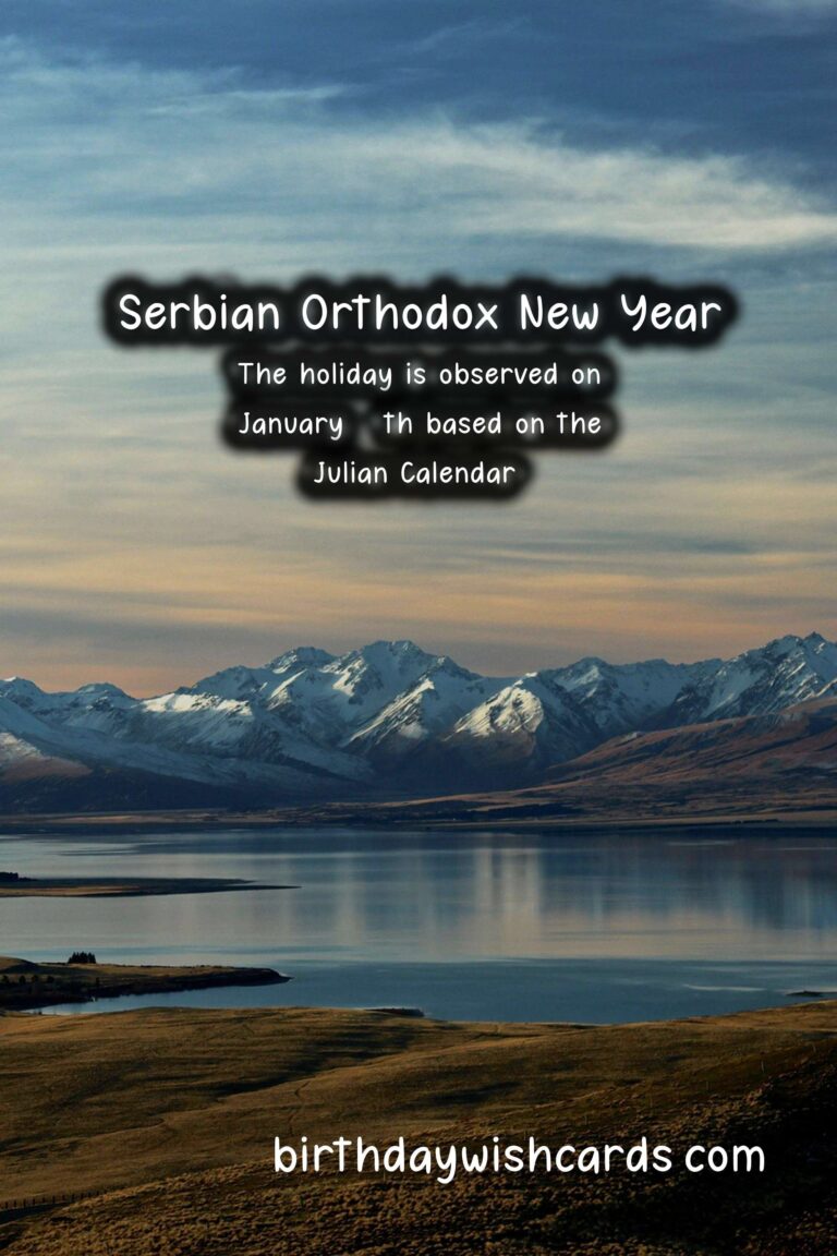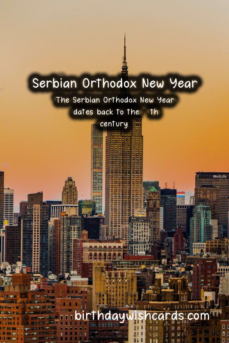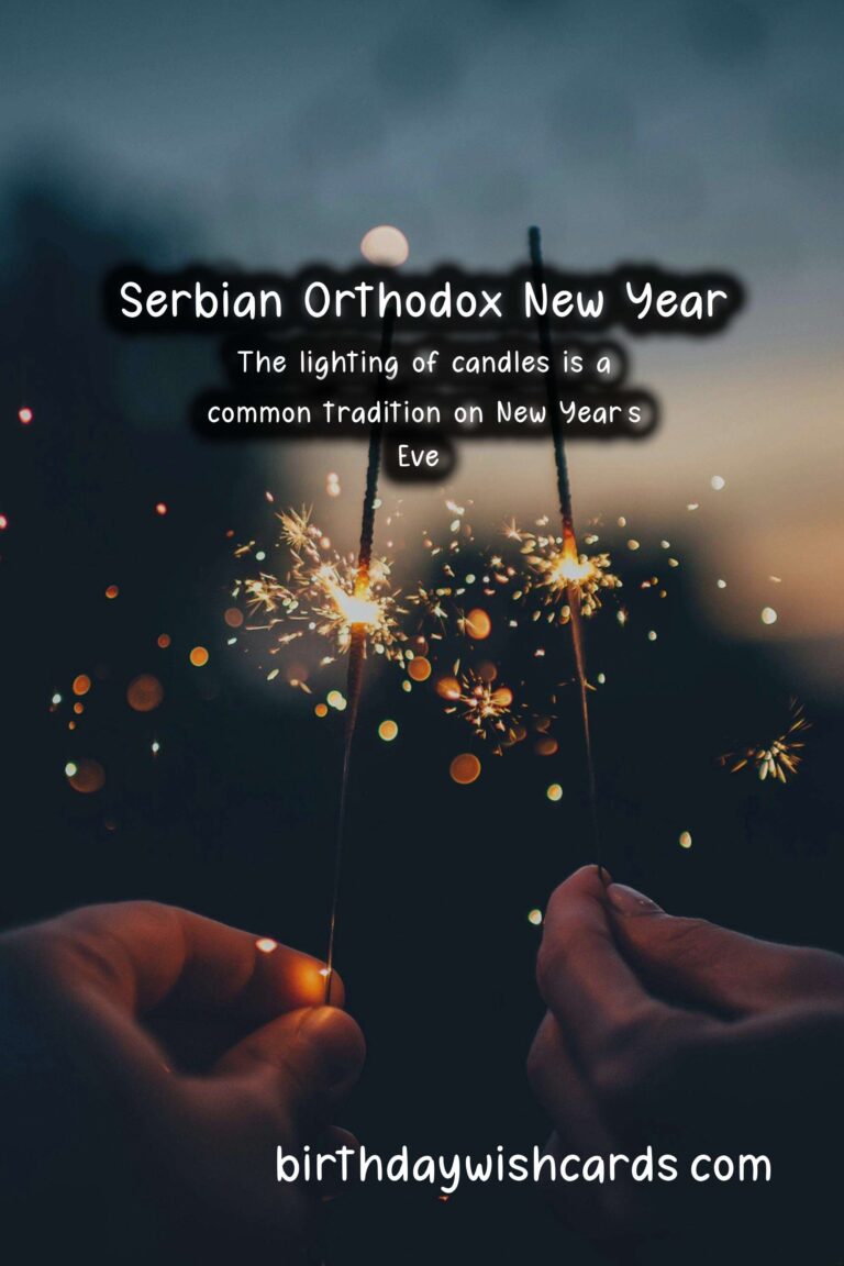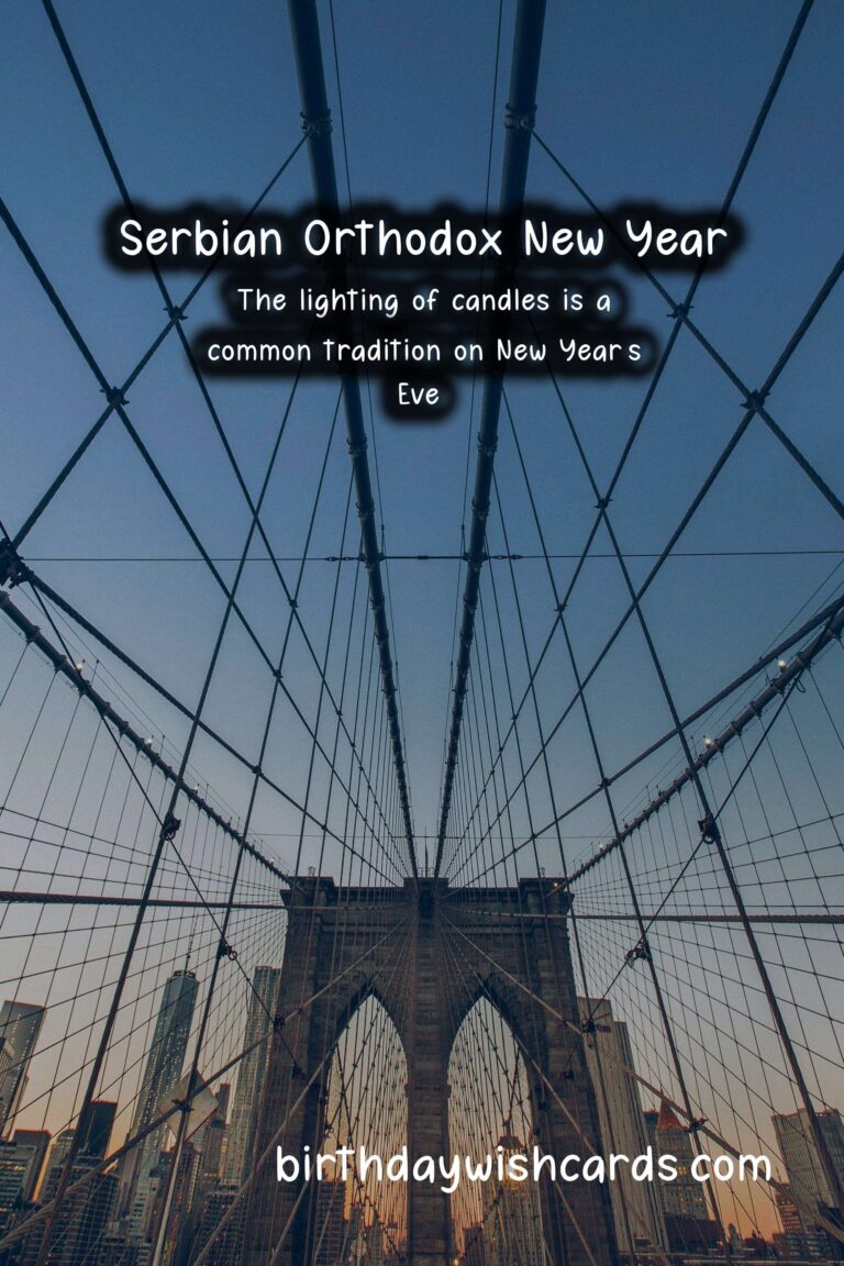 The Serbian Orthodox New Year is a holiday that celebrates a new cycle, marking the beginning of a new era. It is observed on January 14th every year based on the Julian Calendar, which is 13 days behind the Gregorian calendar. This holiday holds great importance in the Serbian Orthodox community as it symbolizes new beginnings and the hope for a better future. It is a day full of customs, traditions, and celebrations, bringing people together to start the year with positive energy and good intentions. Here are some sentences related to the Serbian Orthodox New Year: – The Serbian Orthodox New Year falls on January 14th, according to the Julian Calendar. – The holiday is also known as the Feast of Saint Basil or Vasilitsa. – The tradition of celebrating the Serbian Orthodox New Year dates back to the 14th century. – The Julian Calendar was introduced by Julius Caesar in 45 BC and was used in Serbia until 1918. – According to the Julian Calendar, the year 2021 corresponds to the year 7529. – The Serbian Orthodox New Year is a family-oriented holiday, and it is common for loved ones to gather together and celebrate. – The festivities begin on New Year’s Eve, with people attending church services and lighting candles as a symbol of the new year’s arrival. – The lighting of fires is a significant part of the celebrations, representing the warmth and light that the new year will bring.These are just some of the sentences related to the Serbian Orthodox New Year, and there are many more fascinating facts and traditions associated with this holiday. The Serbian Orthodox New Year holds great significance in the Serbian Orthodox community. The holiday is observed on January 14th based on the Julian Calendar. According to the Julian Calendar, the year 2021 corresponds to the year 7529. The Serbian Orthodox New Year is celebrated with customs, traditions, and gatherings of loved ones. Fires are lit as a symbol of warmth and light representing the new year. The lighting of candles is a common tradition on New Year’s Eve. The Julian Calendar was used in Serbia until 1918. The Serbian Orthodox New Year is also known as the Feast of Saint Basil or Vasilitsa. The festivities during this holiday are family-oriented. The Serbian Orthodox New Year dates back to the 14th century.