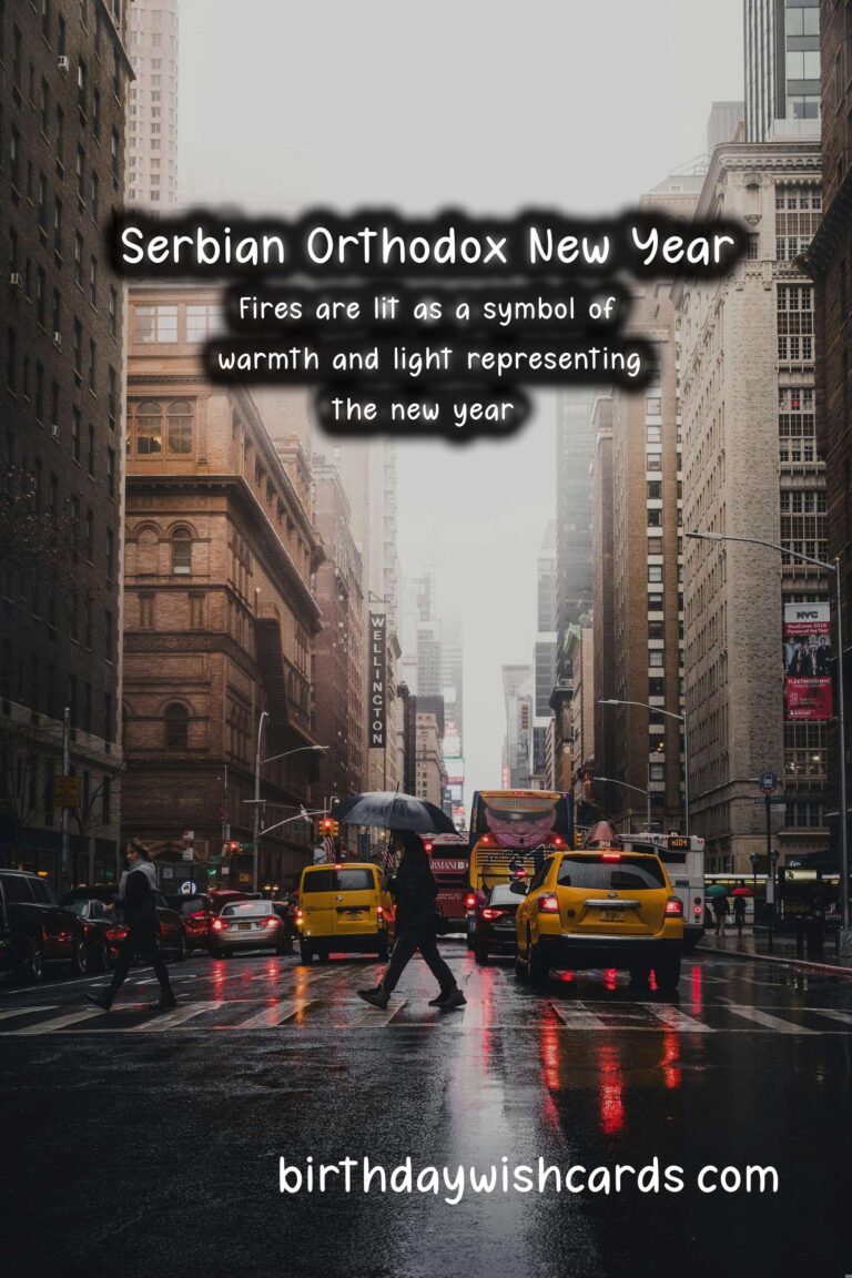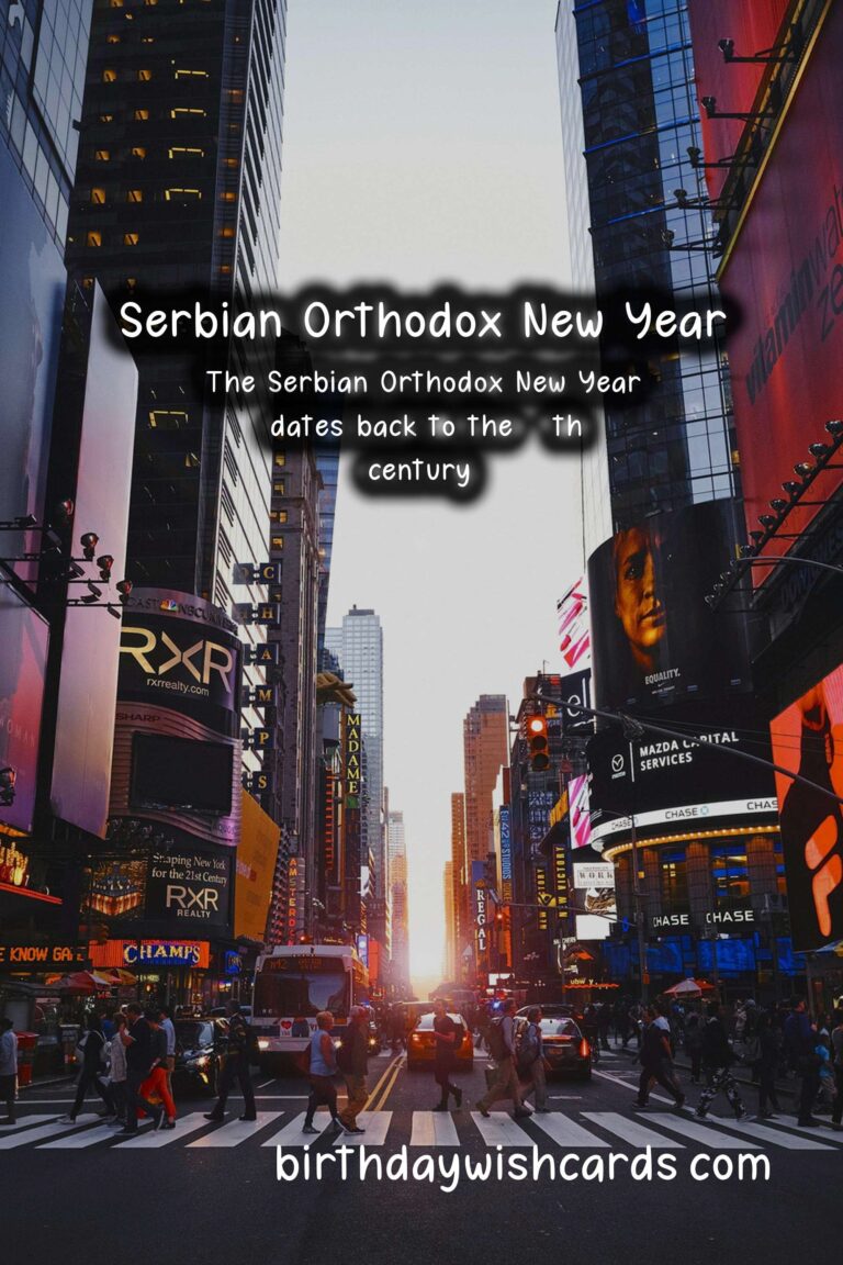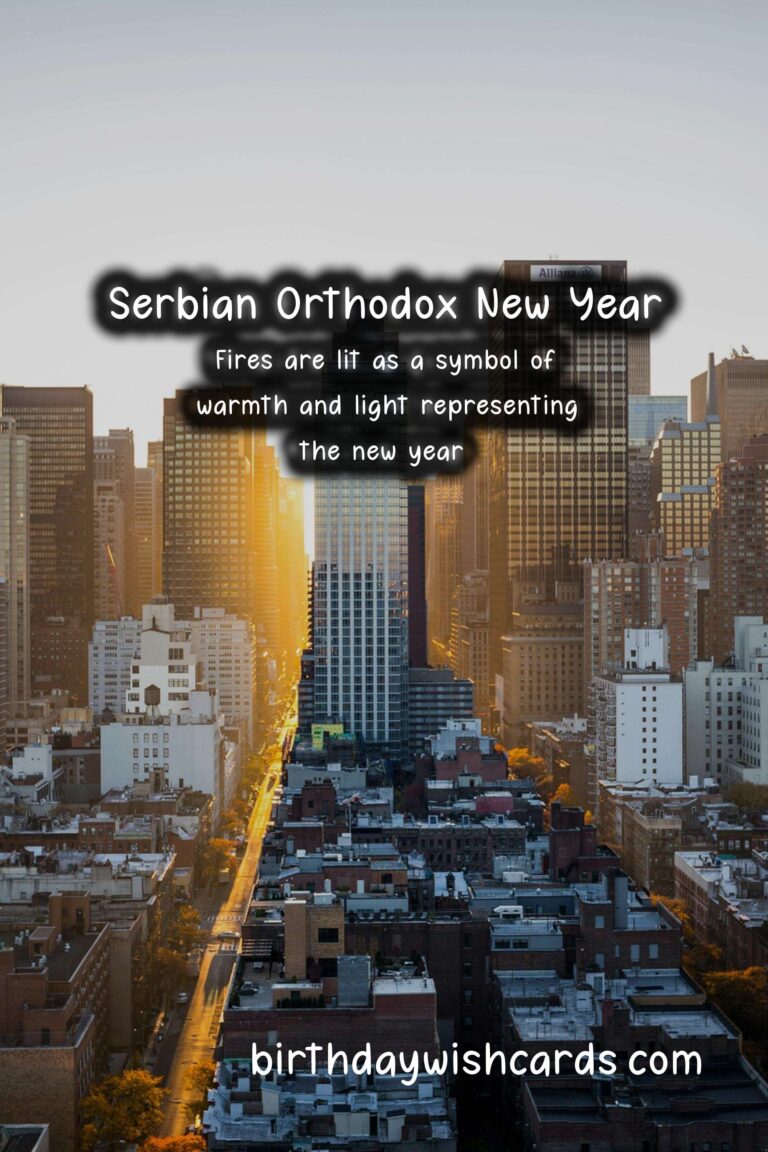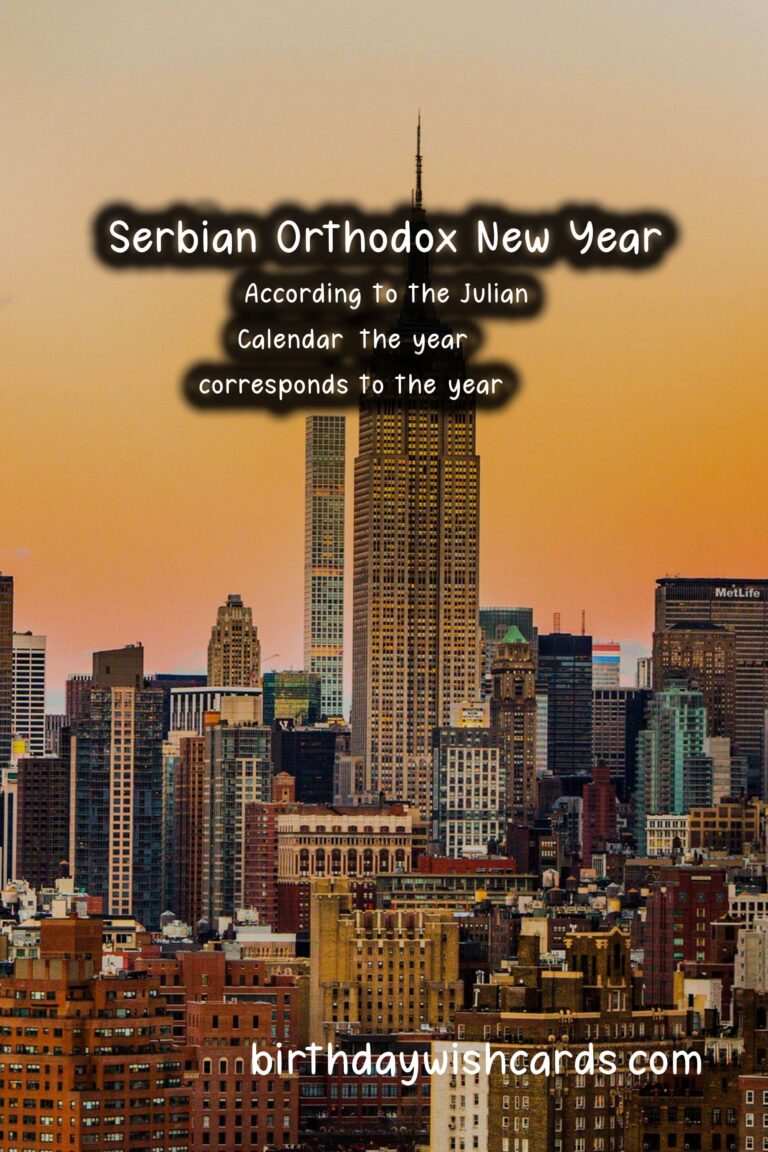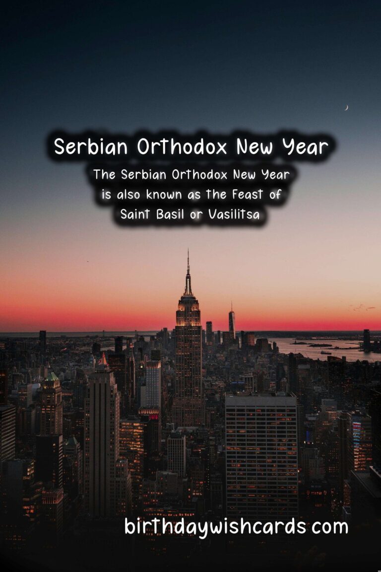 The Serbian Orthodox New Year is a holiday that celebrates a new cycle, marking the beginning of a new era. It is observed on January 14th every year based on the Julian Calendar, which is 13 days behind the Gregorian calendar. This holiday holds great importance in the Serbian Orthodox community as it symbolizes new beginnings and the hope for a better future. It is a day full of customs, traditions, and celebrations, bringing people together to start the year with positive energy and good intentions. Here are some sentences related to the Serbian Orthodox New Year: – The Serbian Orthodox New Year falls on January 14th, according to the Julian Calendar. – The holiday is also known as the Feast of Saint Basil or Vasilitsa. – The tradition of celebrating the Serbian Orthodox New Year dates back to the 14th century. – The Julian Calendar was introduced by Julius Caesar in 45 BC and was used in Serbia until 1918. – According to the Julian Calendar, the year 2021 corresponds to the year 7529. – The Serbian Orthodox New Year is a family-oriented holiday, and it is common for loved ones to gather together and celebrate. – The festivities begin on New Year’s Eve, with people attending church services and lighting candles as a symbol of the new year’s arrival. – The lighting of fires is a significant part of the celebrations, representing the warmth and light that the new year will bring.These are just some of the sentences related to the Serbian Orthodox New Year, and there are many more fascinating facts and traditions associated with this holiday. The Serbian Orthodox New Year holds great significance in the Serbian Orthodox community. The holiday is observed on January 14th based on the Julian Calendar. According to the Julian Calendar, the year 2021 corresponds to the year 7529. The Serbian Orthodox New Year is celebrated with customs, traditions, and gatherings of loved ones. Fires are lit as a symbol of warmth and light representing the new year. The lighting of candles is a common tradition on New Year’s Eve. The Julian Calendar was used in Serbia until 1918. The Serbian Orthodox New Year is also known as the Feast of Saint Basil or Vasilitsa. The festivities during this holiday are family-oriented. The Serbian Orthodox New Year dates back to the 14th century.