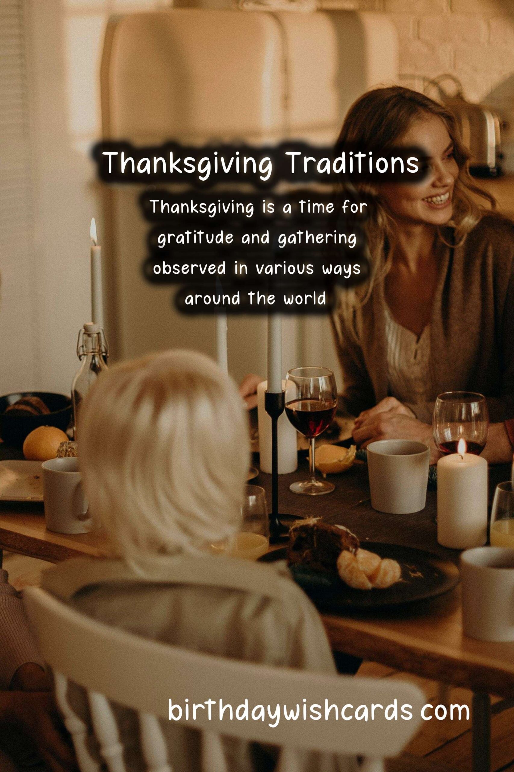 In the United States, Thanksgiving is celebrated on the fourth Thursday of November. It is a time for family reunions, feasting, and reflecting on what one is thankful for. The traditional meal includes roasted turkey, stuffing, cranberry sauce, and pumpkin pie. Parades and football games are also a significant part of the celebration.