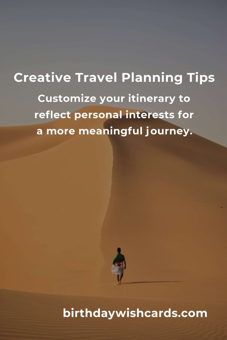 Incorporating these creative travel planning tips can transform your next trip into an extraordinary adventure. By stepping off the beaten path, engaging with local cultures, and remaining open to new experiences, you can craft a journey that is uniquely yours.