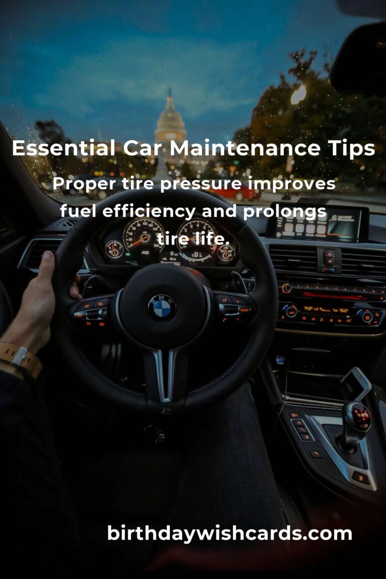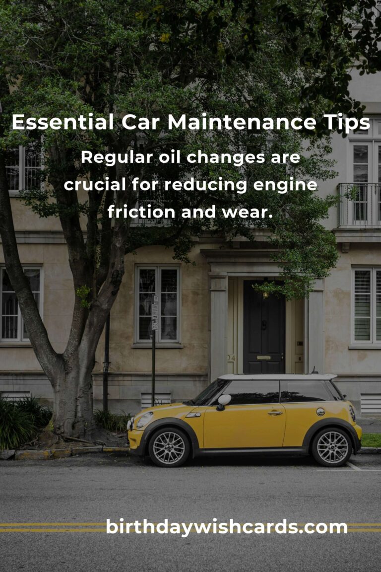 Regular oil changes are crucial for reducing engine friction and wear. Proper tire pressure improves fuel efficiency and prolongs tire life. Replacing clogged air filters ensures optimal engine performance. Inspect brakes regularly to maintain safety and performance. Testing your battery condition helps ensure reliable starting. Keeping your car clean protects the paint and prevents rust.