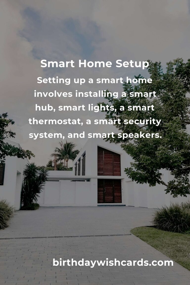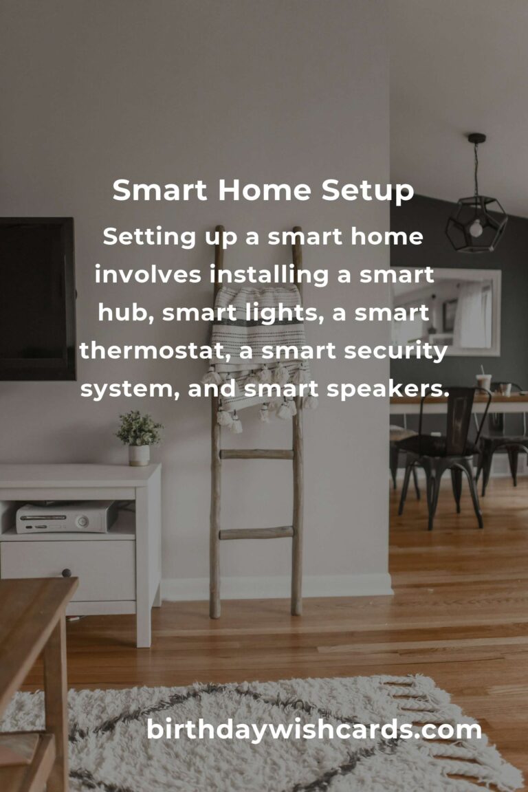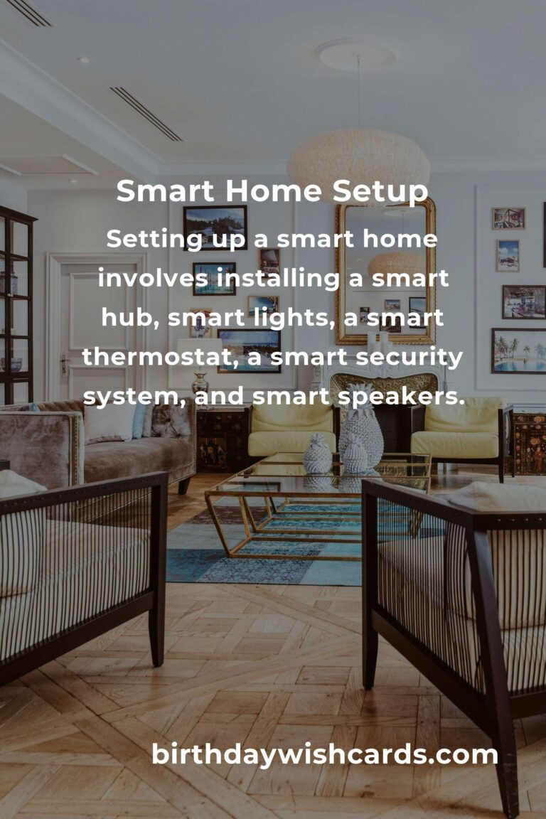 Setting up a smart home involves installing a smart hub, smart lights, a smart thermostat, a smart security system, and smart speakers.