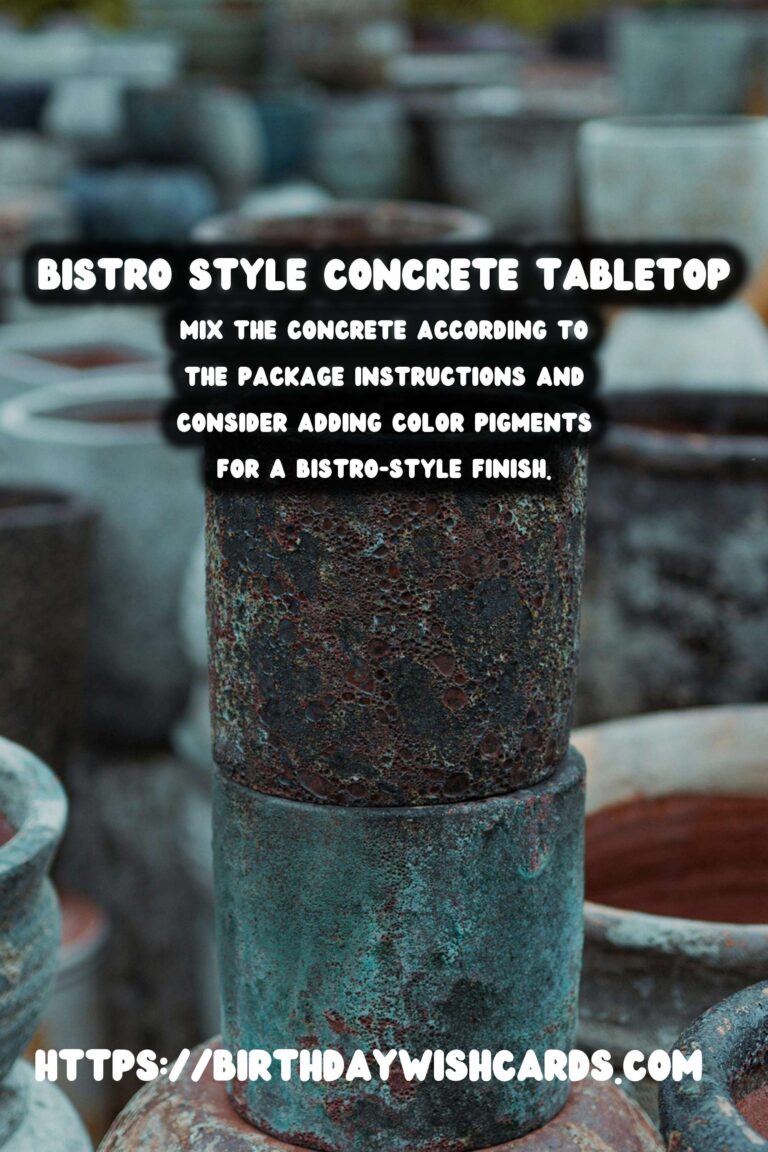 With its modern appeal and robust nature, a DIY concrete tabletop is a worthy addition to any home. By following these steps, you can create a stunning bistro-style piece that is both functional and fashionable. Whether you’re entertaining guests or enjoying a quiet meal, your concrete tabletop will be the center of attention.