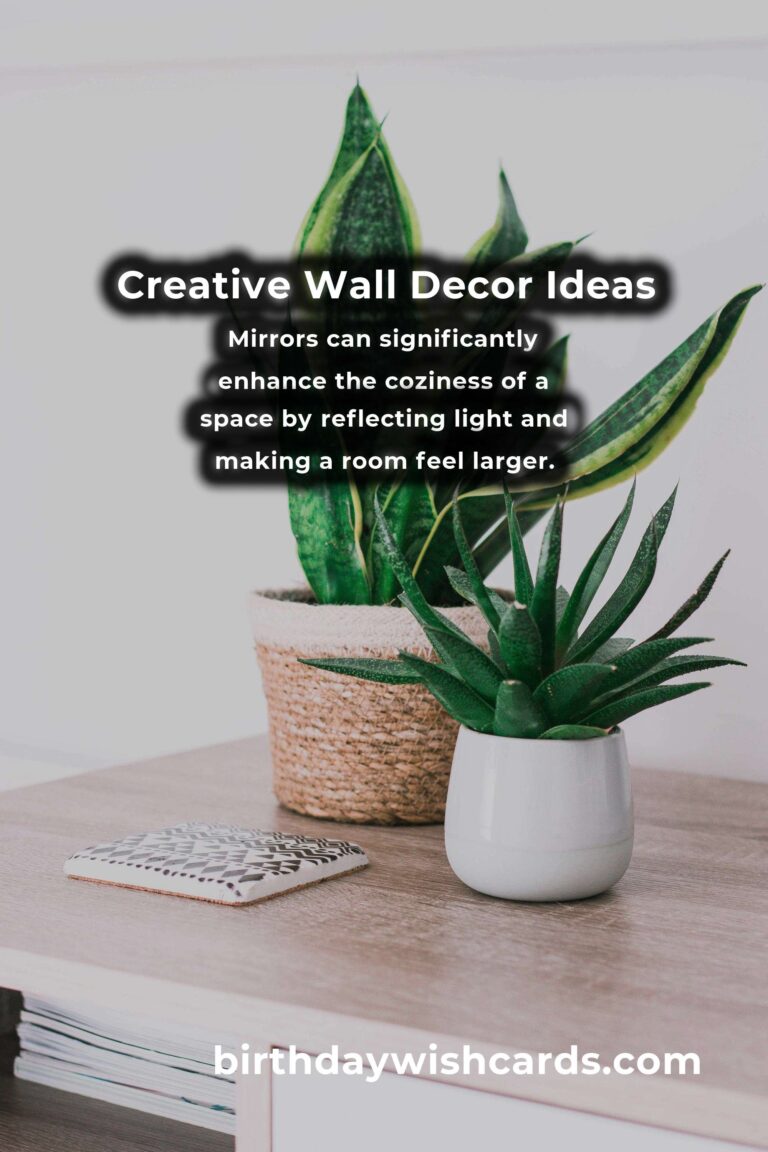 Creating a cozy atmosphere in your home is more than just selecting the right furniture and lighting. A gallery wall is a fantastic way to display your favorite photos and art pieces. Fabric wall hangings add texture and warmth to any room. Mirrors can significantly enhance the coziness of a space by reflecting light and making a room feel larger. Incorporating plants into your wall decor brings a touch of nature indoors.