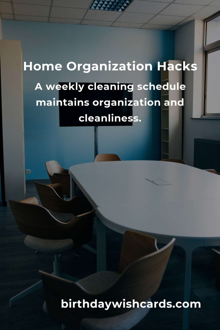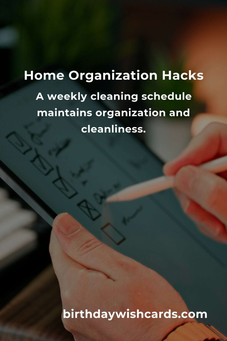A weekly cleaning schedule can help maintain organization and cleanliness in your home. Designate specific tasks for each day, such as vacuuming on Mondays or dusting on Thursdays. This routine ensures that chores are manageable and prevents the build-up of messes.