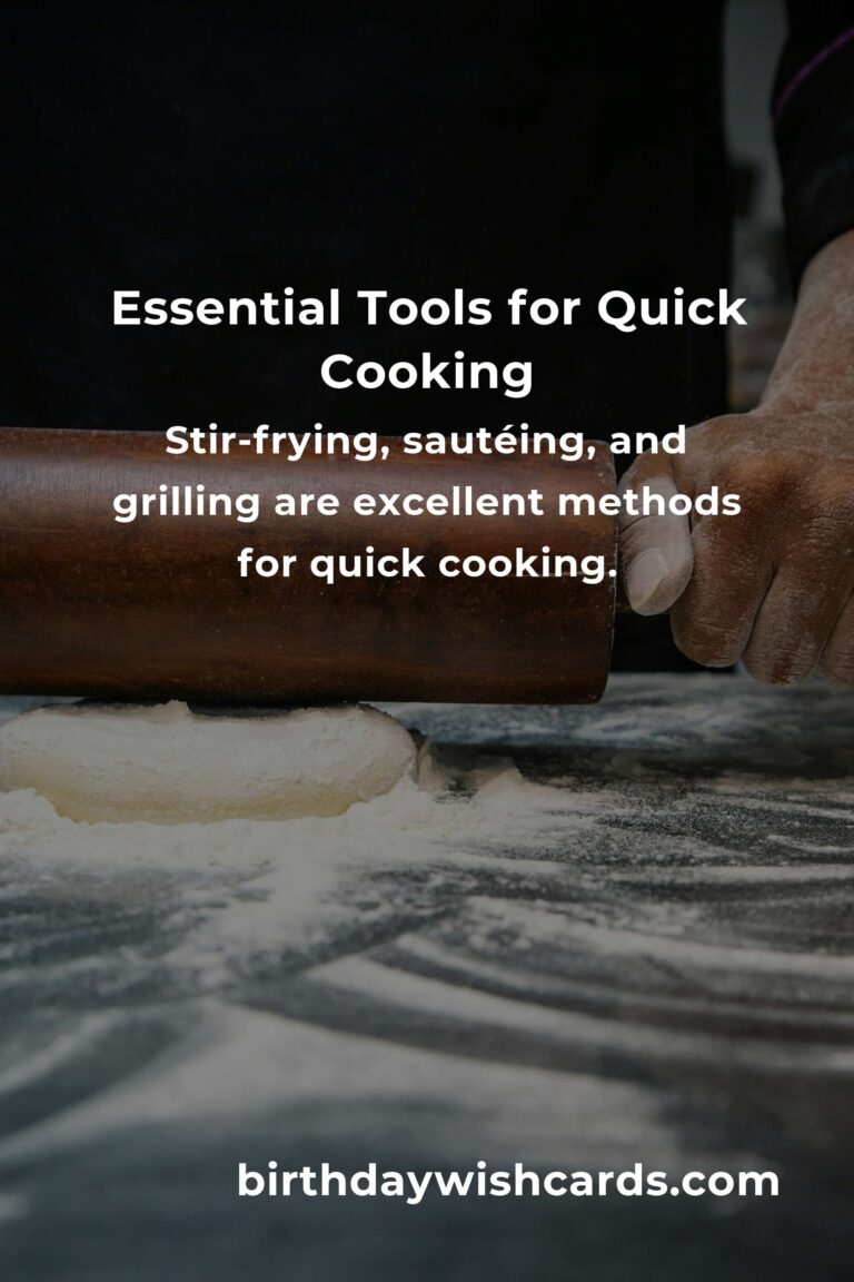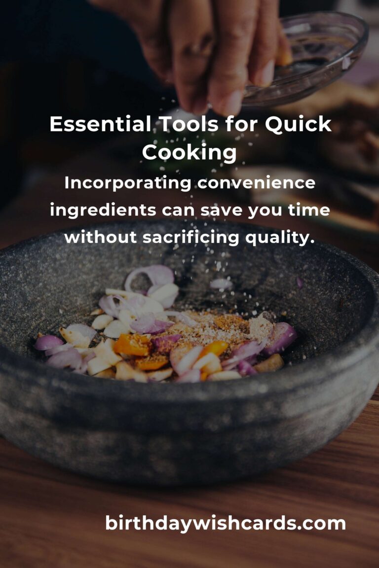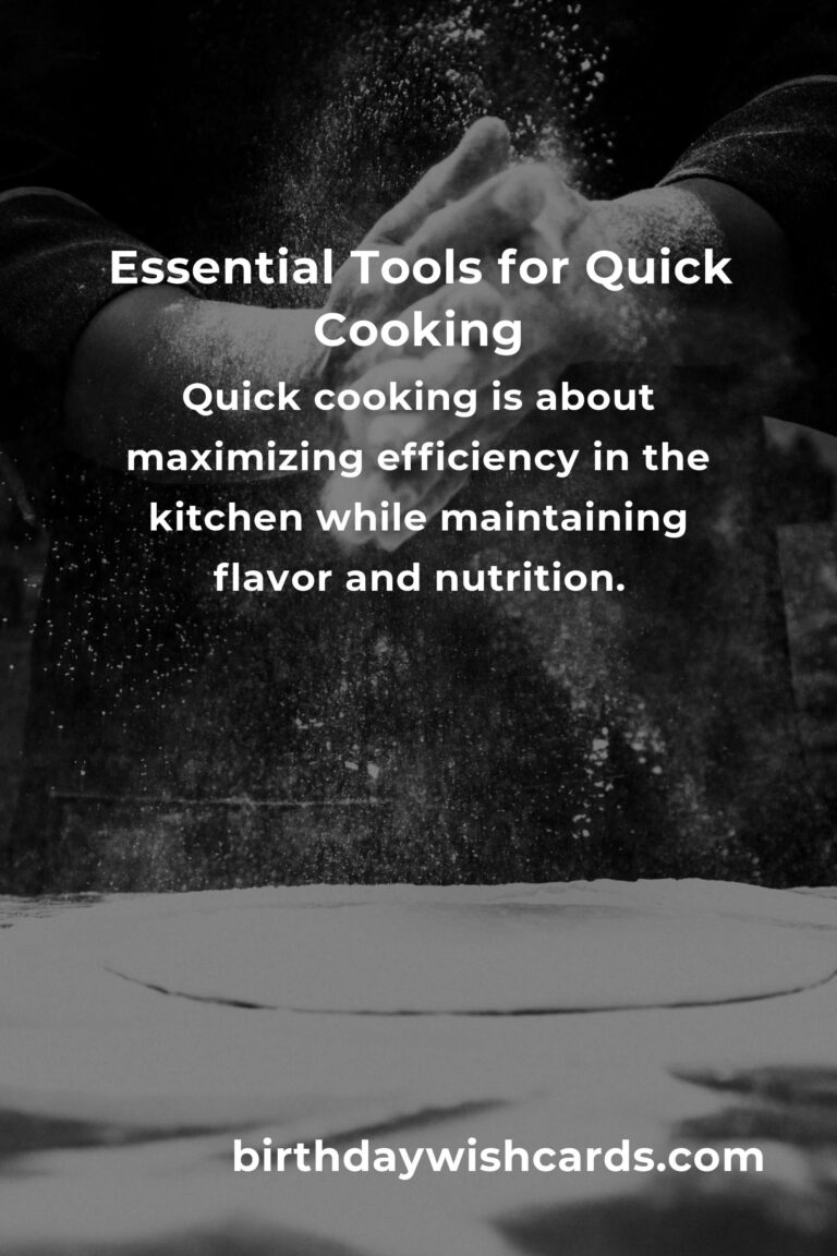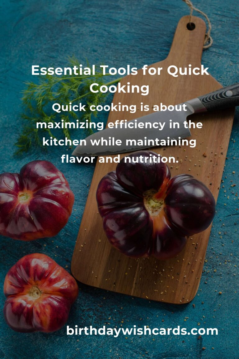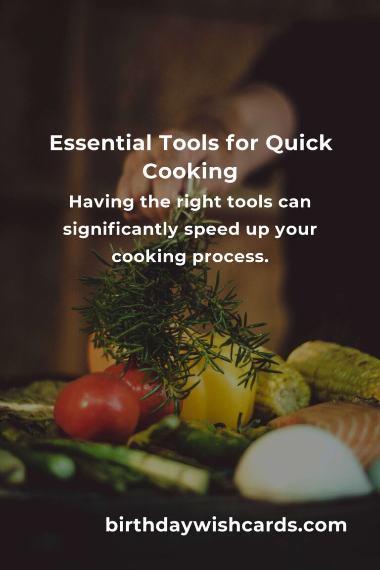 Having the right tools can significantly speed up your cooking process. Key tools include a sharp chef’s knife, a quality cutting board, a non-stick frying pan, a pressure cooker, and a microwave. These items help streamline tasks, from chopping to cooking, ensuring that your meals are ready in record time.