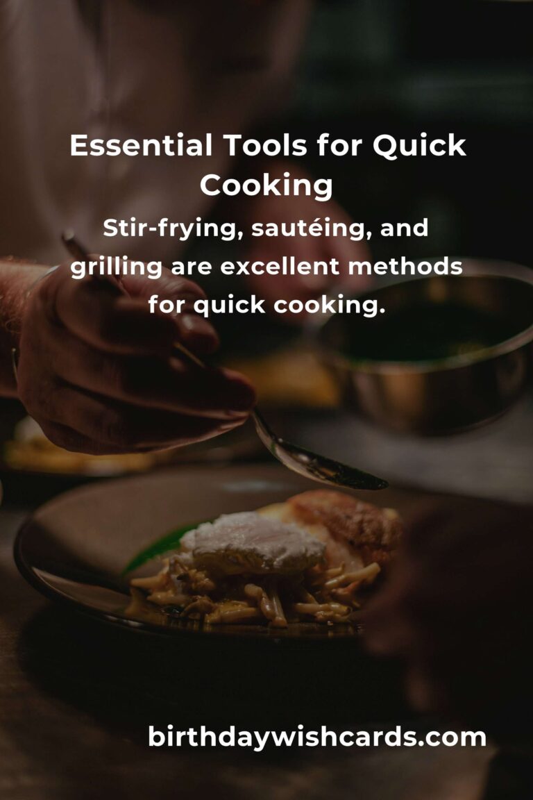 Quick cooking is about maximizing efficiency in the kitchen while maintaining flavor and nutrition. Having the right tools can significantly speed up your cooking process. Prepping ingredients ahead of time is a crucial aspect of quick cooking. Stir-frying, sautéing, and grilling are excellent methods for quick cooking. Incorporating convenience ingredients can save you time without sacrificing quality.