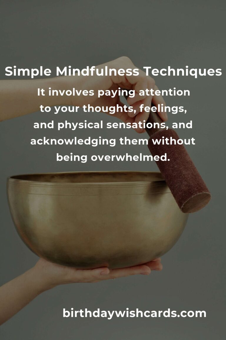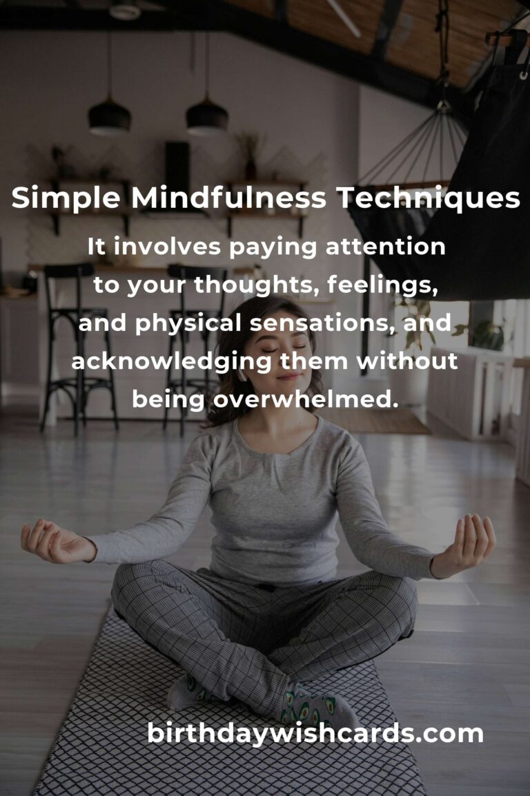 Mindfulness is the practice of being fully present and engaged in the moment, without judgment. It involves paying attention to your thoughts, feelings, and physical sensations, and acknowledging them without being overwhelmed. Practicing mindfulness has numerous benefits, including reduced stress, improved focus, and enhanced emotional regulation. Simple mindfulness techniques include focused breathing, body scan, mindful eating, and walking meditation. Integrating mindfulness into your daily routine doesn’t have to be difficult and can start with small, manageable practices.