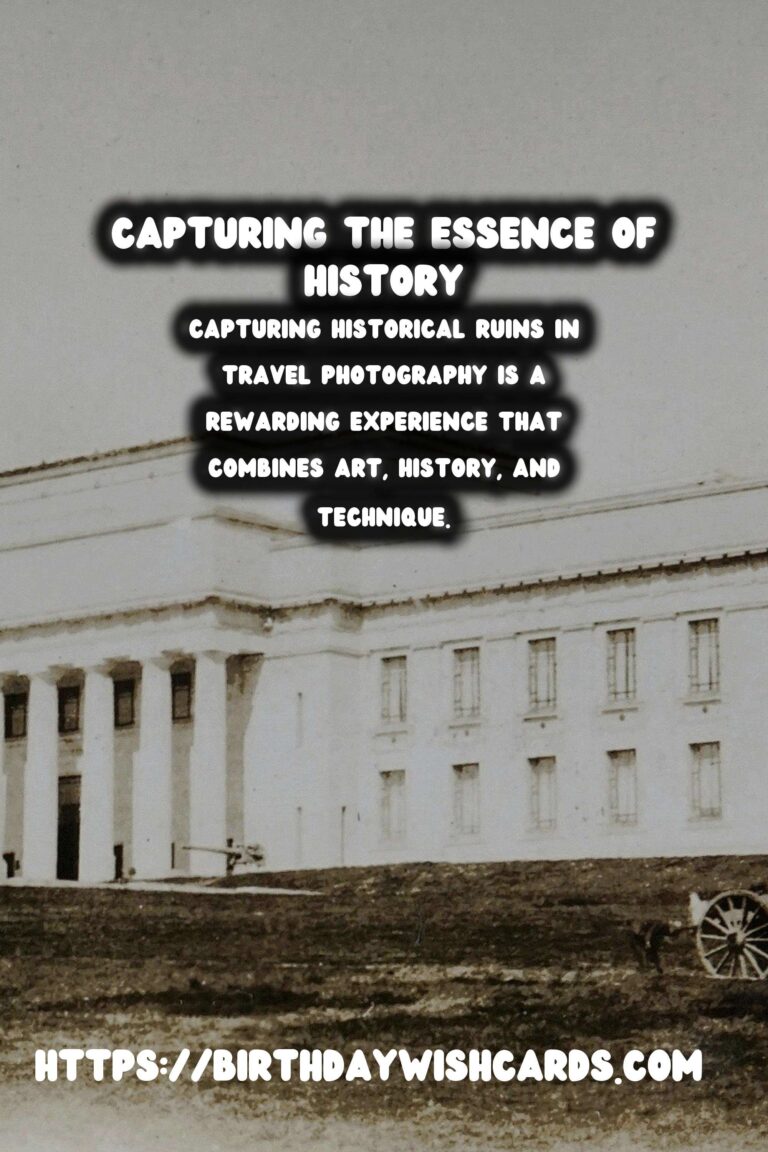 Capturing historical ruins in travel photography is a rewarding experience that combines art, history, and technique. By understanding the history, respecting the site, and using the right techniques and equipment, you can create images that not only capture attention but tell a story that spans centuries. Happy photographing!