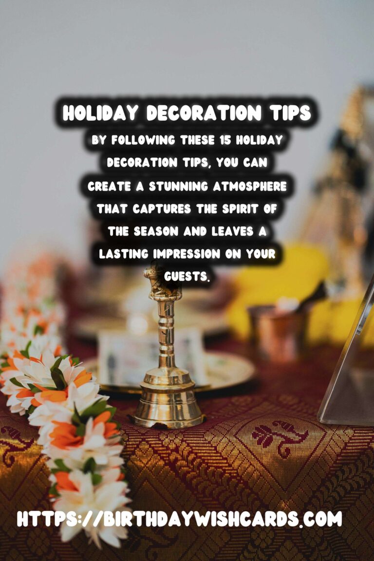 By following these 15 holiday decoration tips, you can create a stunning atmosphere that captures the spirit of the season and leaves a lasting impression on your guests. Enjoy the festive season!