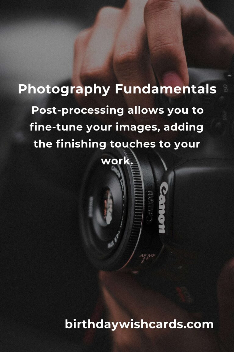 Post-processing is an integral part of modern photography. It allows you to fine-tune your images, adding the finishing touches to your work. With software like Adobe Lightroom and Photoshop, you can adjust exposure, contrast, and color balance, while also removing imperfections and enhancing details. Post-processing can turn a good photograph into a great one.