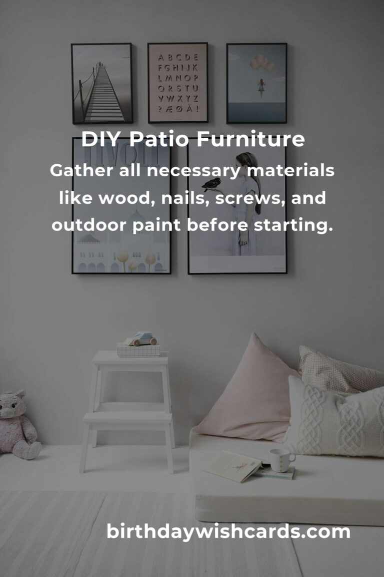 Before you begin, gather all the necessary materials. Common materials for DIY patio furniture include wood (such as cedar or pine), nails, screws, wood glue, and outdoor paint or stain to protect your furniture from the elements. You might also want to consider cushions for comfort, which you can either make yourself or buy ready-made.