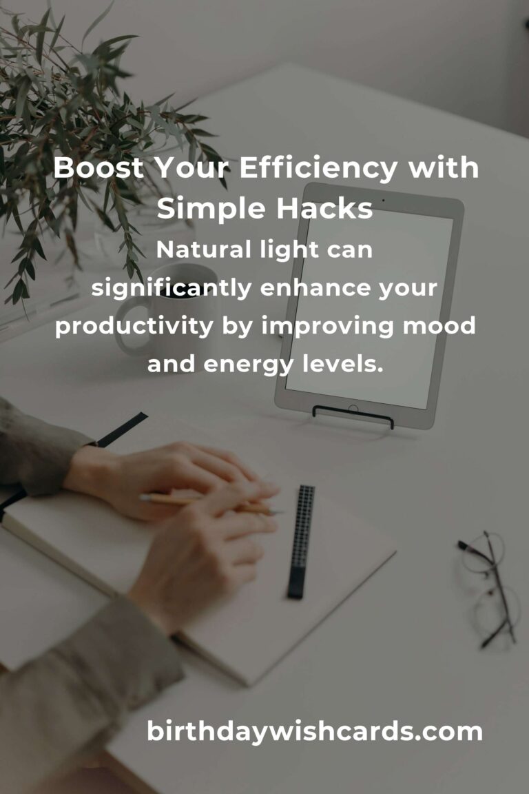 Natural light is a free resource that can significantly enhance your productivity. Studies have shown that exposure to natural light improves mood, energy levels, and focus. Rearrange your workspace to make the most of available natural light, or take regular breaks outside to boost your productivity.