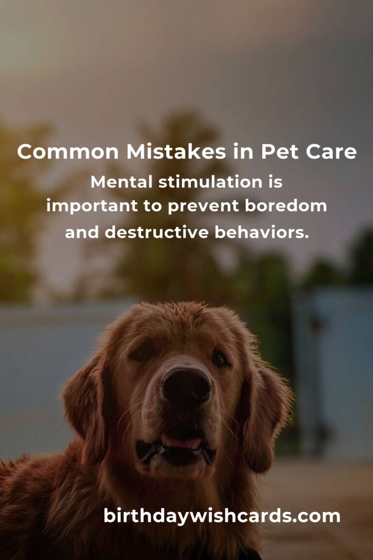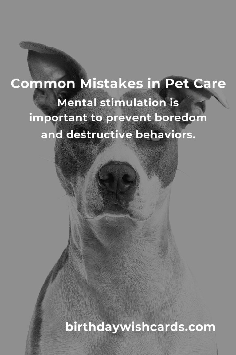 Many pet owners unknowingly make mistakes that can affect their pet’s health and well-being. Consult your veterinarian to develop a diet plan tailored to your pet’s needs. Regular veterinary visits are essential for monitoring your pet’s health. Dental health is often overlooked in pet care. Pets require regular physical activity to stay healthy and happy. Mental stimulation is important to prevent boredom and destructive behaviors.