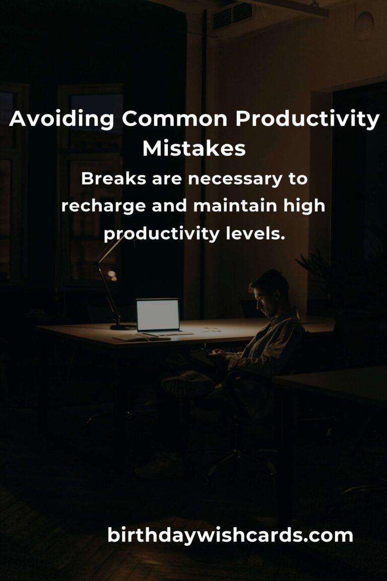 Continuous work without breaks is another common mistake. Breaks are necessary to recharge and maintain high levels of productivity. Techniques such as the Pomodoro Technique, which involves taking short breaks after focused work intervals, can be highly effective.