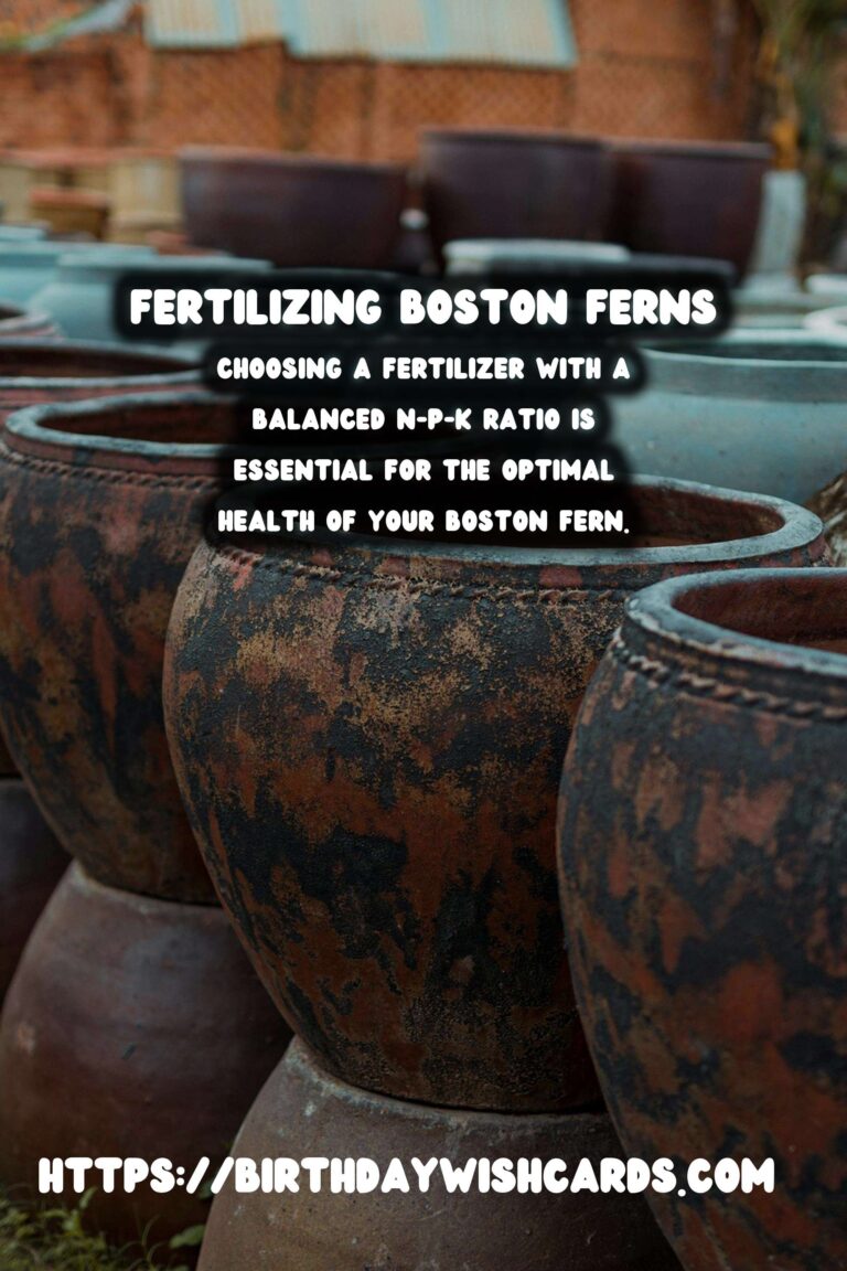 By understanding the nutritional needs and proper fertilization practices for Boston ferns, you can ensure they remain healthy and vibrant. Remember to choose the right fertilizer, apply it correctly, and monitor your plants for any signs of nutrient imbalance. With the right care, your Boston ferns will flourish, adding beauty and greenery to your home or garden.