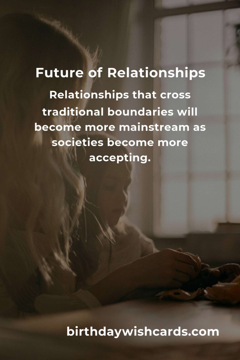 The future of relationships will also reflect changing cultural attitudes towards diversity and inclusivity. As societies become more accepting, relationships that cross traditional boundaries—such as intercultural or same-sex relationships—will become more mainstream.