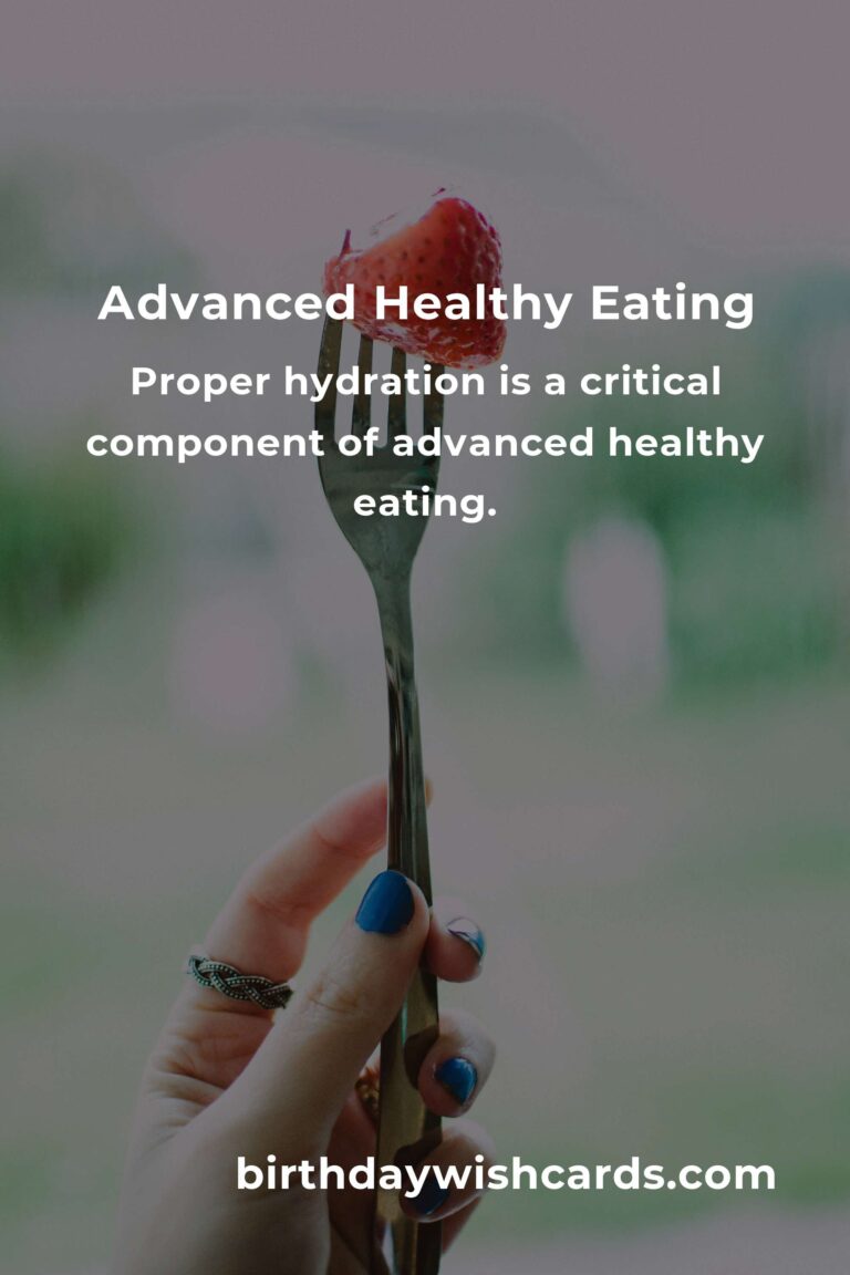 Proper hydration is a critical component of advanced healthy eating. Water plays a vital role in digestion, nutrient absorption, and overall cellular function. Aim to drink at least 8-10 glasses of water daily, and consider incorporating herbal teas and water-rich foods like cucumbers and watermelon into your diet.