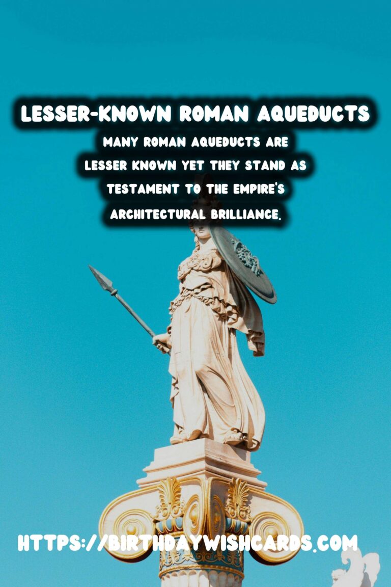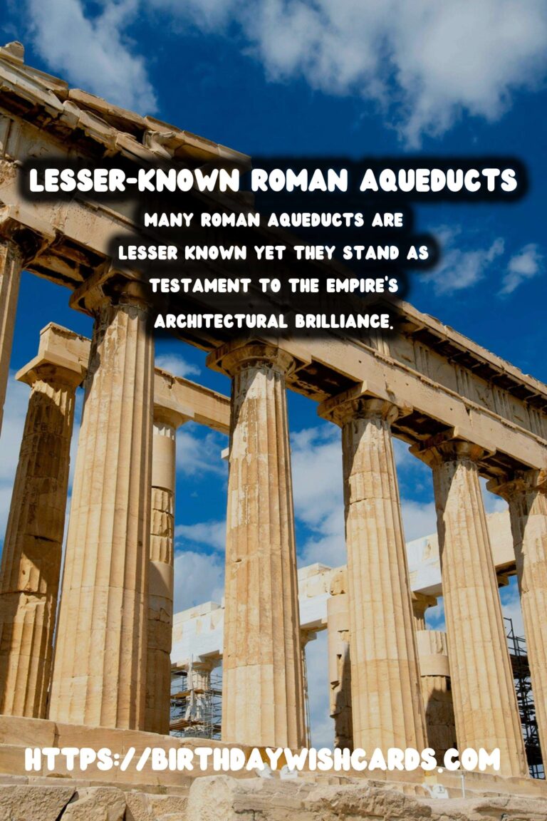 Many Roman aqueducts are lesser known yet they stand as testament to the empire’s architectural brilliance. Each aqueduct reflects the Roman dedication to innovation and public welfare.