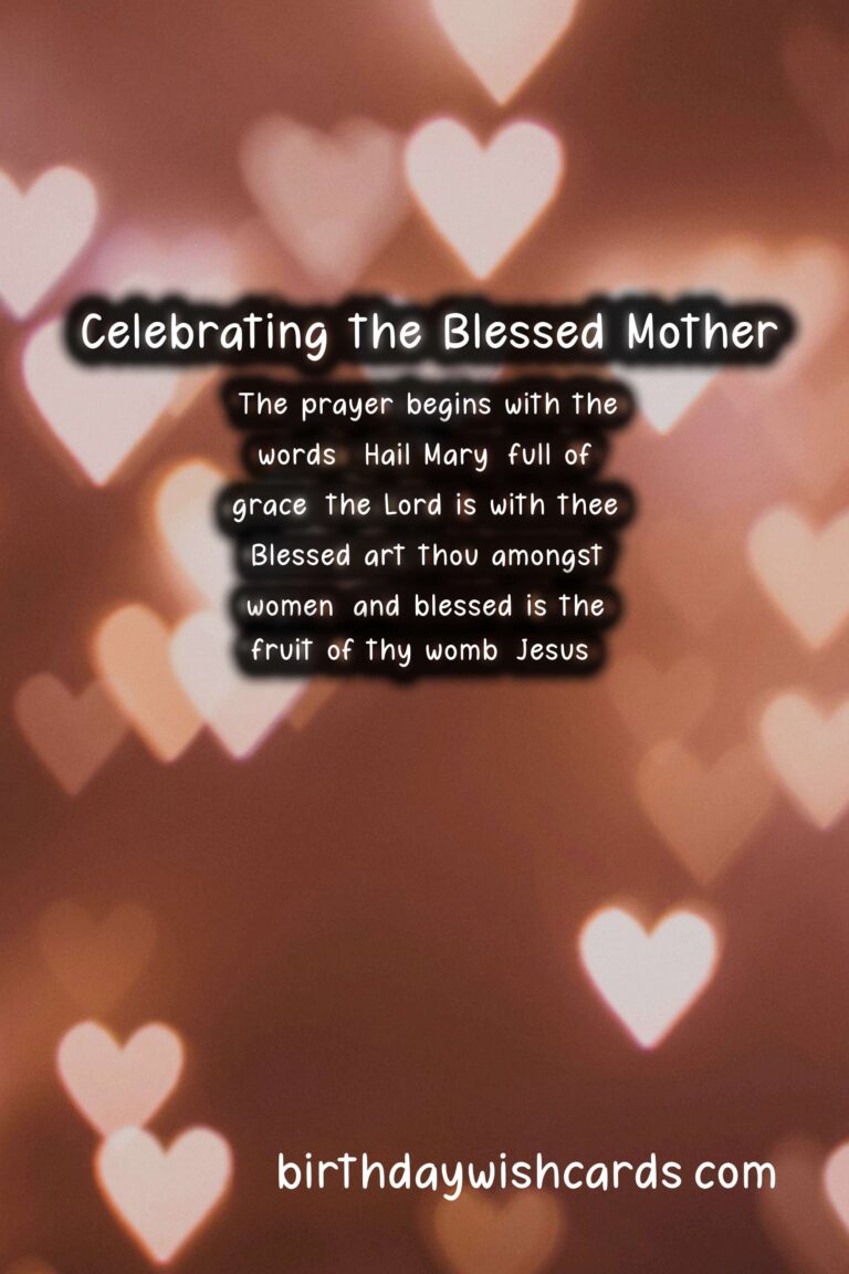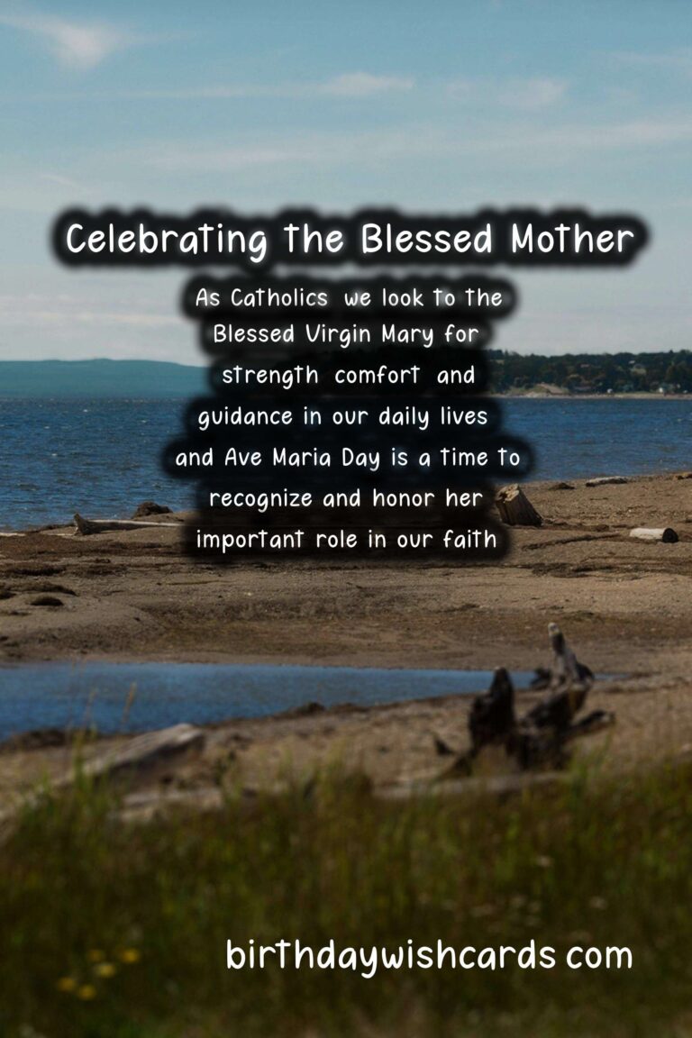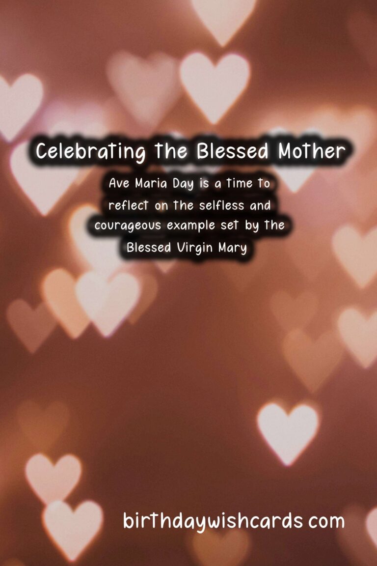 Ave Maria Day is celebrated on September 8 every year in honor of the Blessed Virgin Mary, the mother of Jesus Christ. This day is a time to reflect on the important role that the Virgin Mary plays in the Catholic faith and to honor her life and legacy. It is a day to remember the powerful words of the Ave Maria prayer and to celebrate the life of one of the most revered women in history. Ave Maria Day, also known as the Feast of the Nativity of the Blessed Virgin Mary, is a day of celebration and reflection in the Catholic Church. The date of September 8 was chosen to honor the birth of the Virgin Mary, which is believed to have taken place in Nazareth. The feast of the Nativity of the Blessed Virgin Mary was first recognized in the seventh century and was later confirmed by Pope Sergius I in the year 680. Ave Maria Day is a special day for Catholics to honor and celebrate the life of the Blessed Virgin Mary. The word “Ave” comes from the Latin word for “hail” and is also a common way to greet someone in many languages. The Ave Maria prayer, also known as the Hail Mary, is a powerful and beloved prayer that is often recited during Mass and other Catholic celebrations. The prayer begins with the words, “Hail Mary, full of grace, the Lord is with thee. Blessed art thou amongst women, and blessed is the fruit of thy womb, Jesus.” These words are a reminder of the Annunciation, when the Angel Gabriel appeared to Mary and told her she would give birth to the Son of God. Ave Maria Day is a time to reflect on the selfless and courageous example set by the Blessed Virgin Mary. Mary’s willingness to say “yes” to God’s plan for her life is an inspiration to many and continues to be a source of strength and hope for Catholics around the world. On this special day, Catholics may attend Mass, participate in special prayers and devotions, or take the time to reflect on the life of the Blessed Mother. In some cultures, it is traditional to give gifts of flowers or other small tokens to honor the Virgin Mary on Ave Maria Day. There are also special concerts and performances in honor of the feast of the Nativity of the Blessed Virgin Mary. Ave Maria Day is also an opportunity to deepen one’s relationship with the Virgin Mary, who is seen as a powerful intercessor and an example of faith for all believers. She is revered as a mother to all and is often called upon for her guidance and protection. As Catholics, we look to the Blessed Virgin Mary for strength, comfort, and guidance in our daily lives, and Ave Maria Day is a time to recognize and honor her important role in our faith. Let us remember the words of the Ave Maria prayer and the example of the Blessed Mother as we celebrate this special day in her honor.