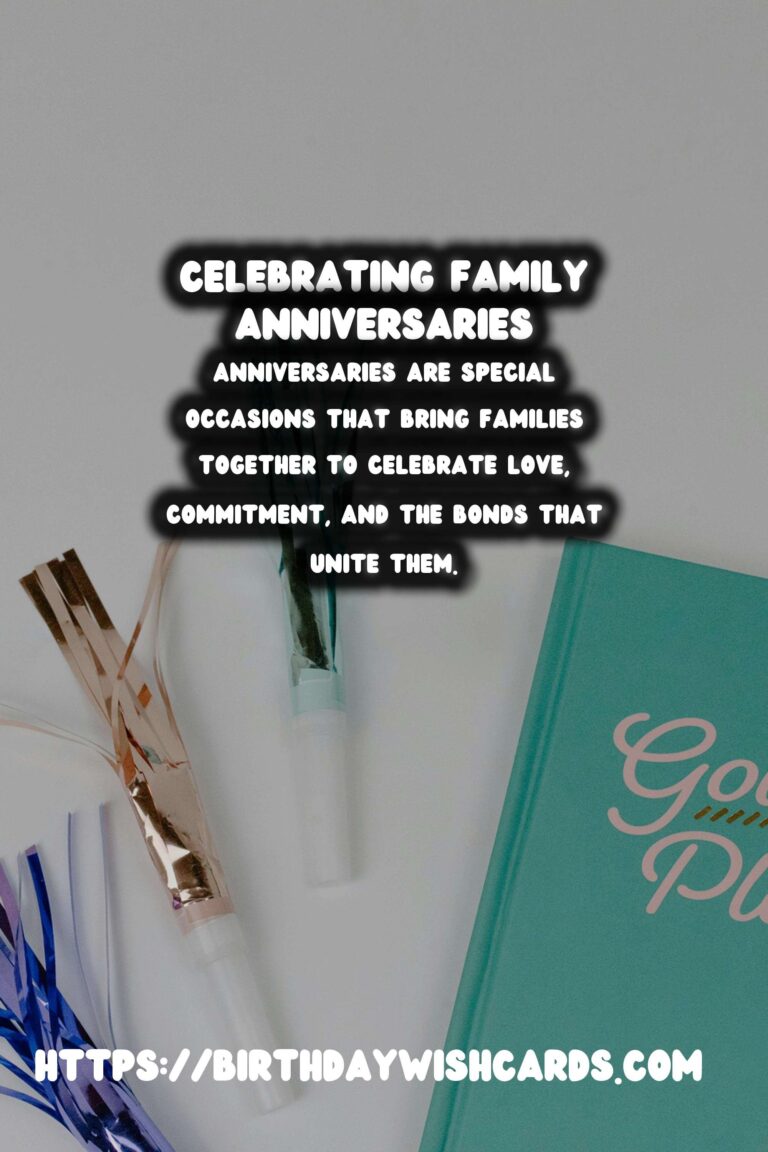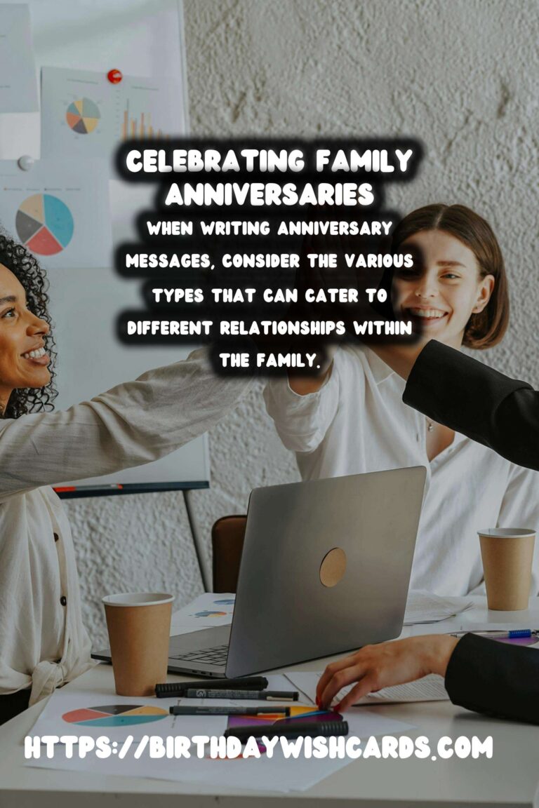 Anniversary messages are a wonderful opportunity to express love and appreciation to family members. By personalizing your message and using positive language, you can create a heartfelt message that resonates with everyone. Celebrate your family’s milestones together and cherish the memories you create!
