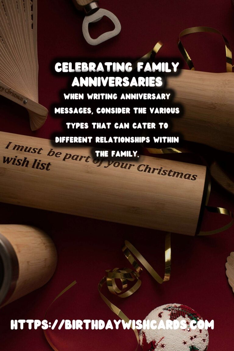 Anniversaries are special occasions that bring families together to celebrate love, commitment, and the bonds that unite them. Whether it’s a wedding anniversary, a family reunion, or a milestone birthday, crafting the perfect anniversary message can make the celebration even more memorable. In this article, we’ll explore how to write heartfelt anniversary messages suitable for the whole family.